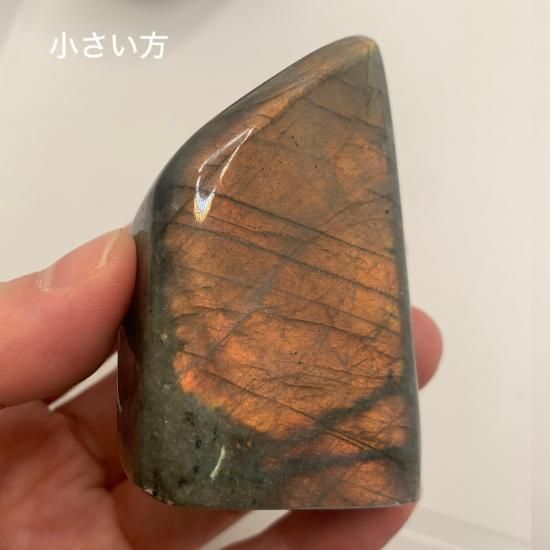ピンク、オレンジの光沢のラブラドライトは珍しいです☆